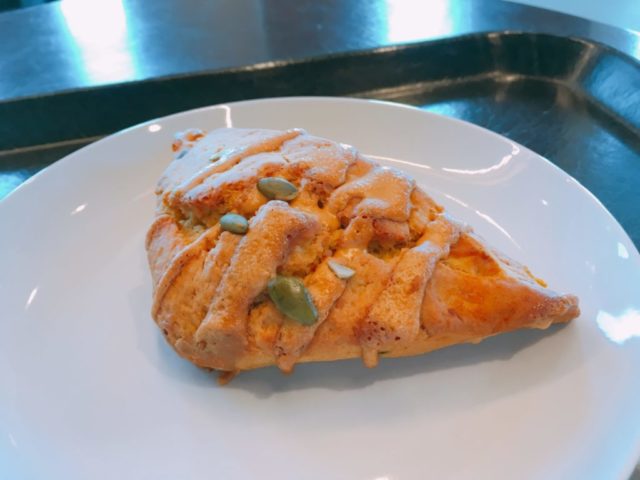 スタバのアメリカンスコーンパンプキンをレジで注文するとトースターで温めてもらえます。
